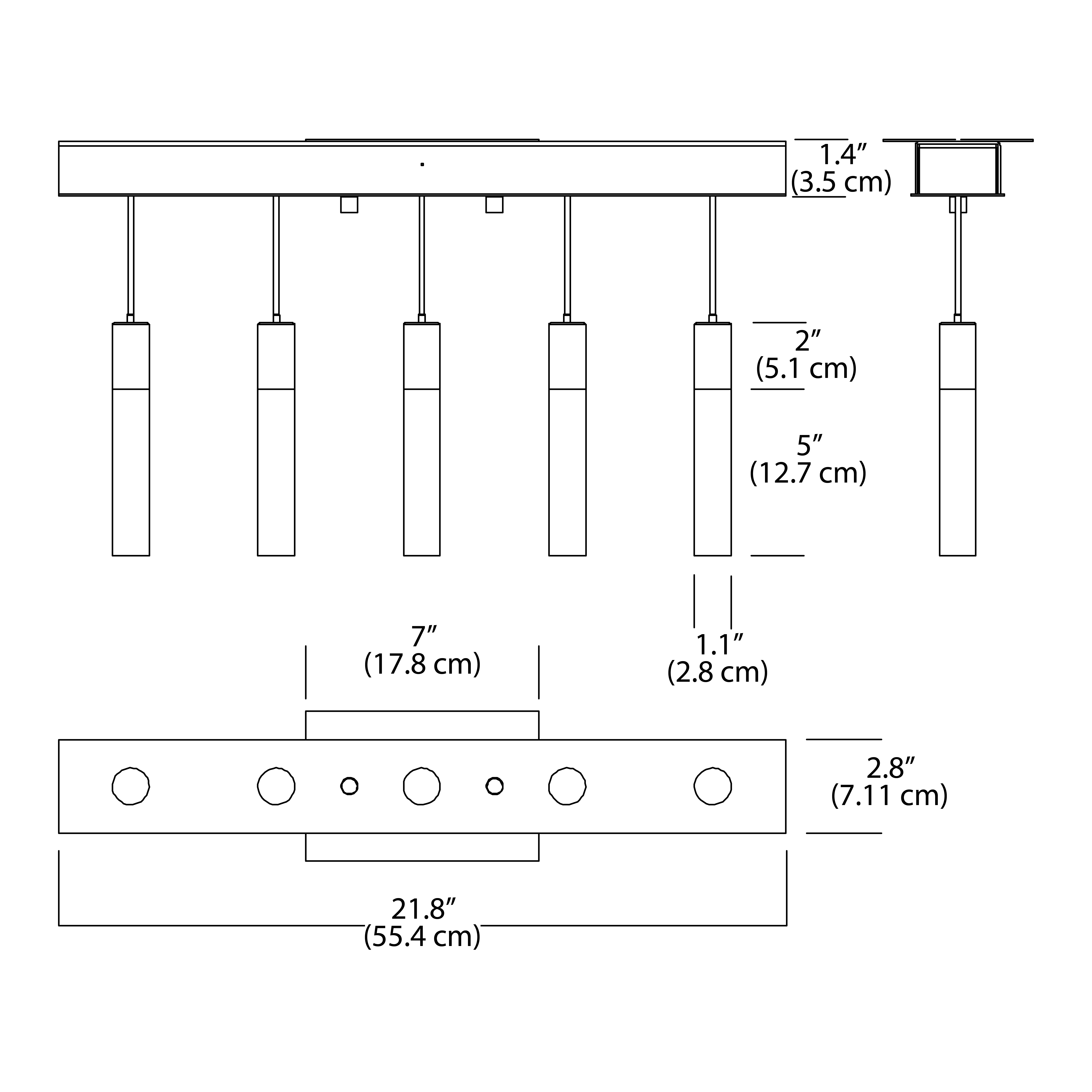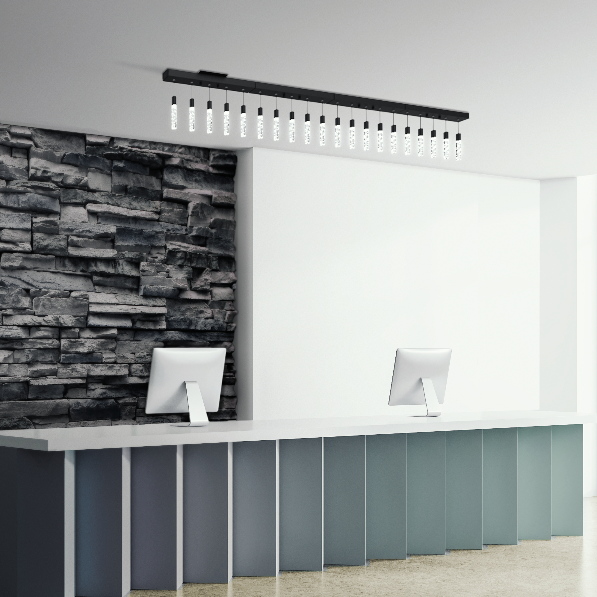Five bubble pendants are spaciously suspended from a 22” long canopy.