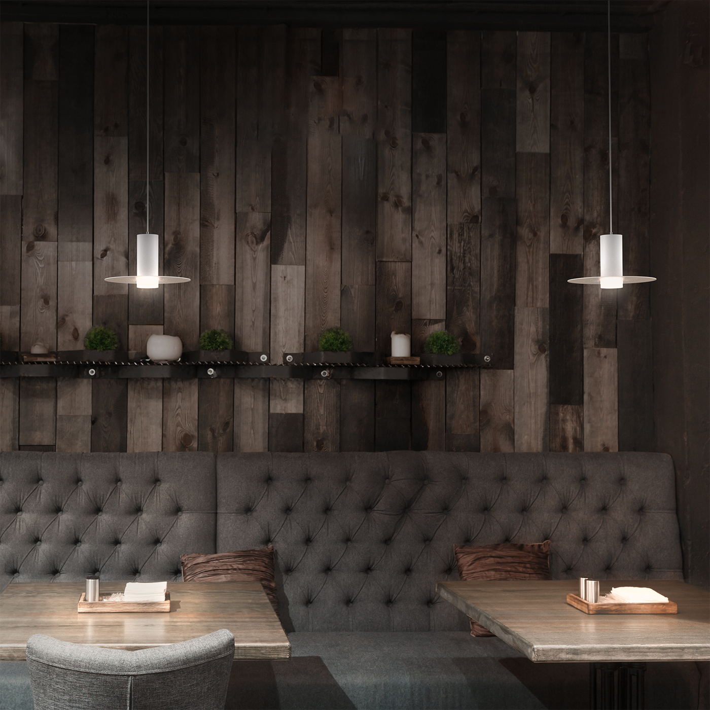 Small Pendant Novo Short Socket with Luminous Ring Diffuser, combined with a 6in Brim.