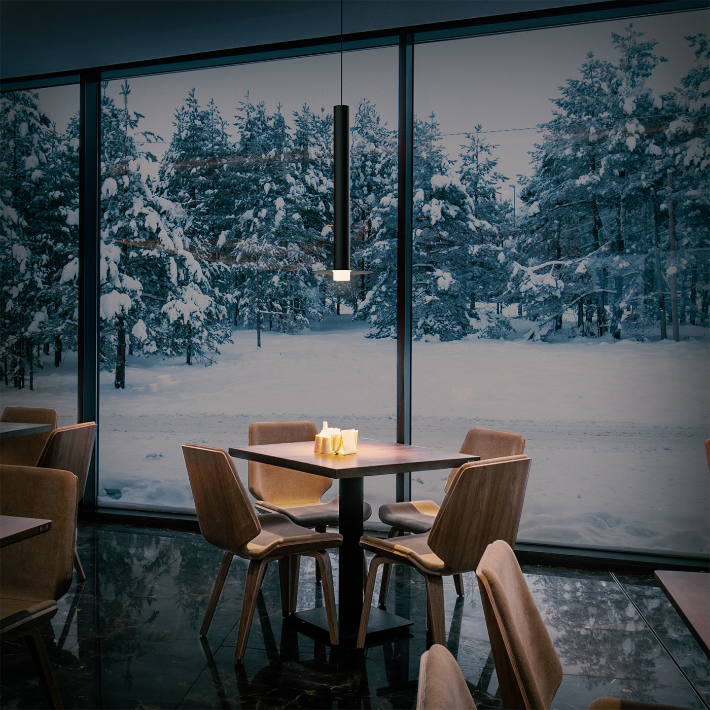 Small Pendant Novo Tall Socket with Luminous Ring Diffuser, combined with a 6in Brim.