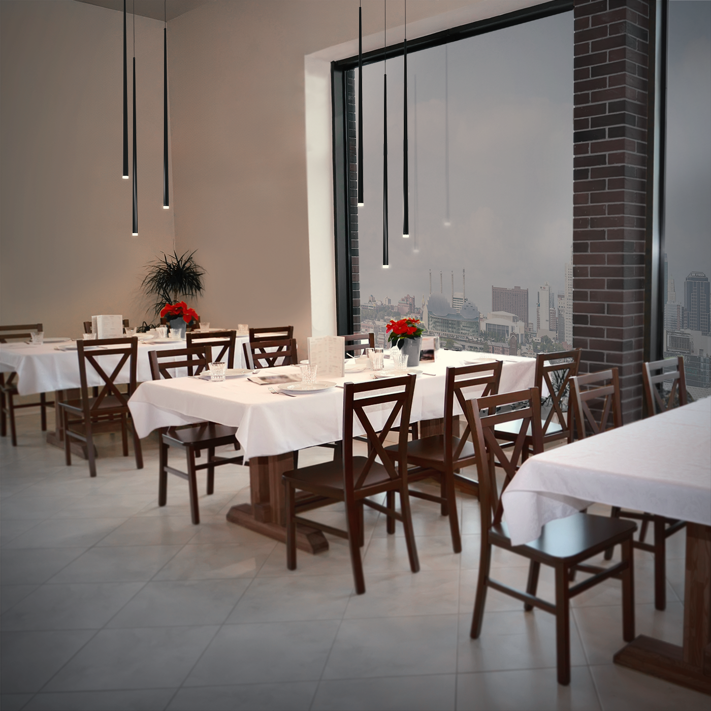 The aesthetic of three Tall Cone pendants deliver a sharp, stately look to virtually any environment. High lumen output suitable for spotlighting any area.